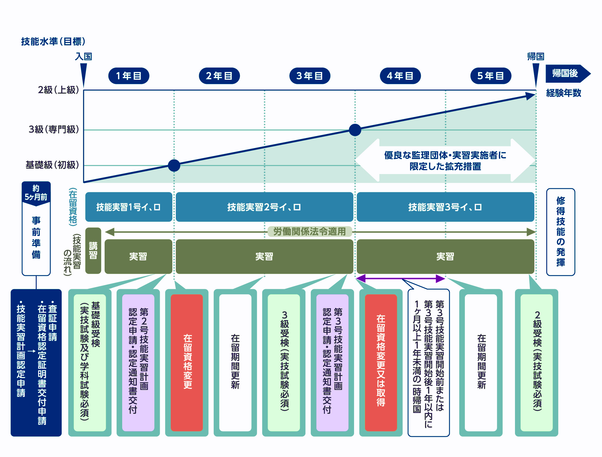 | 制度の拡充 | ①優良な監理団体・実習実施者での実習期間の延長(3年→5年) |